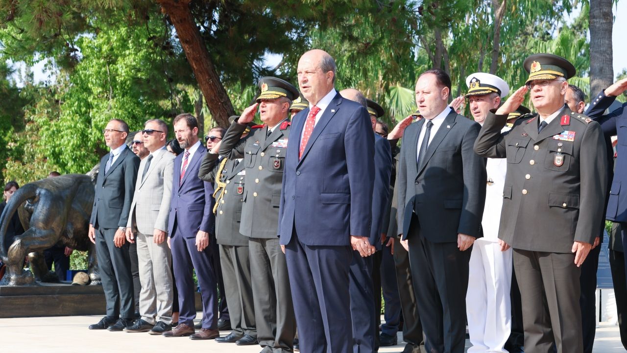 Törene Cumhurbaşkanı Ersin Tatar, Cumhuriyet Meclisi Başkanı Ziya Öztürkler, Türkiye'nin Lefkoşa Büyükelçisi Ali Murat Başçeri, Kıbrıs Türk Barış Kuvvetleri Komutanı Tümgeneral Sebahattin Kılınç, Güvenlik Kuvvetleri Komutanı Tümgeneral İlker Görgülü ve askeri erkanın yanı sıra diğer yetkililer ile vatandaşlar katıldı.
