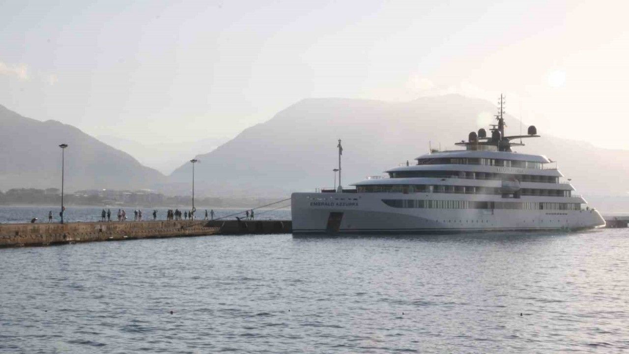 Antalya’nın Alanya ilçesine, Bahama Bandıralı ‘Emerald Azzurra’ adlı lüks gemi sabah saatlerinde Alanya’ya ulaştı.