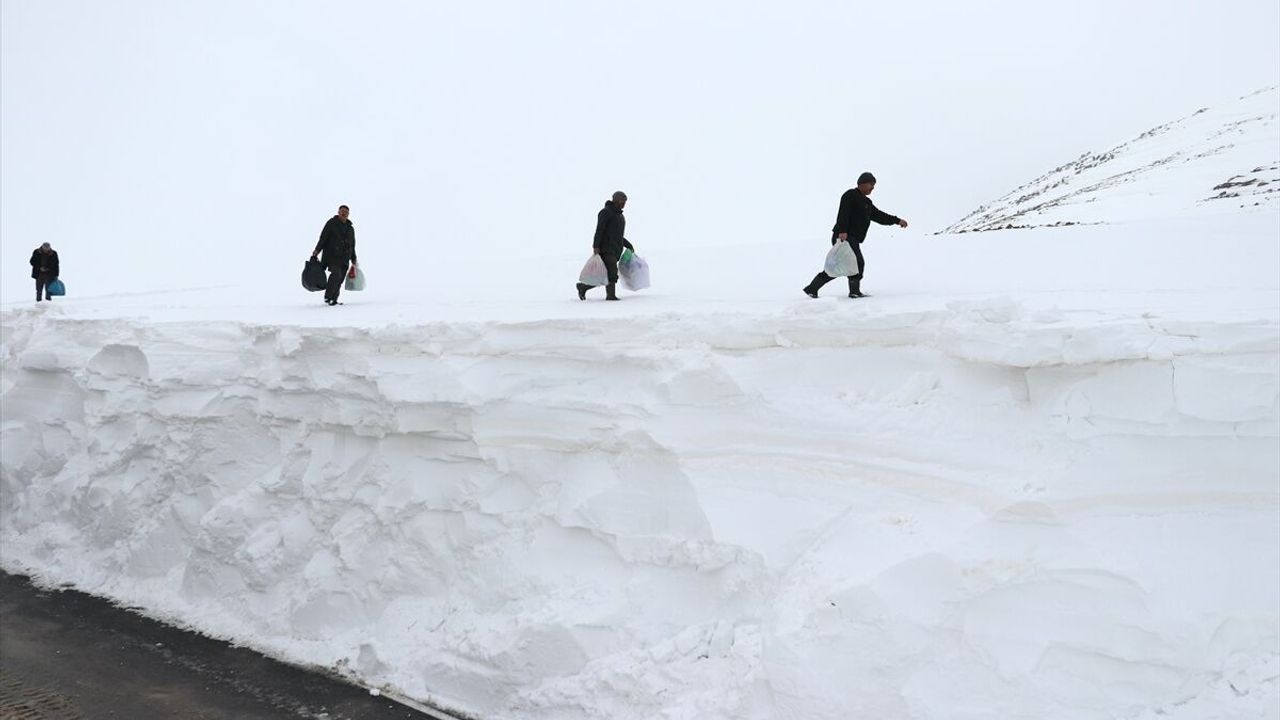 AĞRI (AA) - Ağrı'da Karayolları ekipleri, kar kalınlığının 5 metreyi bulduğu Ağrı-Kağızman kara yolunu gece gündüz çalışarak yeniden ulaşıma açtı.