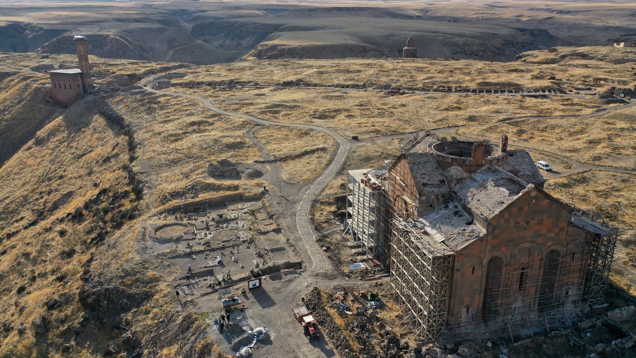 Ani Ören Yeri Kazı Başkanı Doç. Dr. Muhammet Arslan, AA muhabirine, Kültür ve Turizm Bakanlığı ile Kafkas Üniversitesi ortaklığında Ani'de yürütülen kazıda, koruma ve çevre düzenleme çalışmalarının devam ettiğini söyledi.