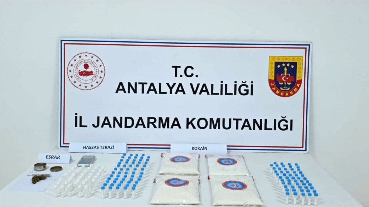Antalya Cumhuriyet Başsavcılığı talimatıyla Döşemealtı ilçesinde 1 şüphelinin evine Antalya İl Jandarma Komutanlığı Narkotik Şube Müdürlüğü ve Döşemealtı İlçe Jandarma Komutanlığı ekiplerince operasyon düzenlendi. Evde yapılan aramada 4 kilo 830 gram kokain, 10 gram kubar esrar ve 1 adet hassas terazi ele geçirildi.