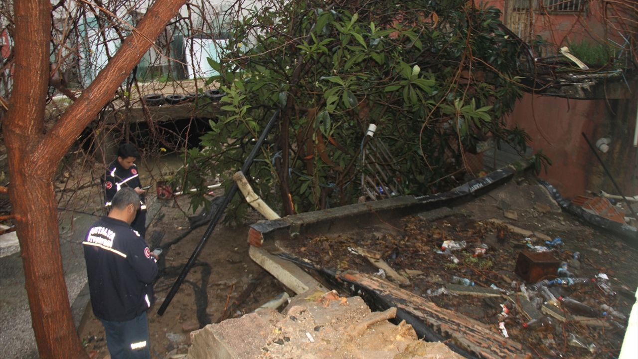 ANTALYA (AA) - Antalya'nın Serik ilçesinde etkili olan sağanak nedeniyle uzun süredir kullanılmayan tek katlı bina çöktü.