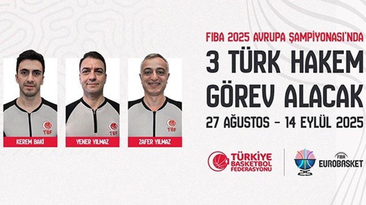 Finlandiya, Polonya, Kıbrıs Rum Kesimi ve Letonya’nın ev sahipliğinde 27 Ağustos - 14 Eylül tarihleri arasında düzenlenecek olan Uluslararası Basketbol Federasyonu (FIBA) 2025 Avrupa Basketbol Şampiyonası’nda (EuroBasket), 3 Türk hakeme görev verildi. Şampiyonada Kerem Baki, Yener Yılmaz ve Zafer Yılmaz görev yapacak. Ayrıca turnuvada Murat Biricik’in de FIBA hakem eğitmeni olarak görev alacağı belirtildi.