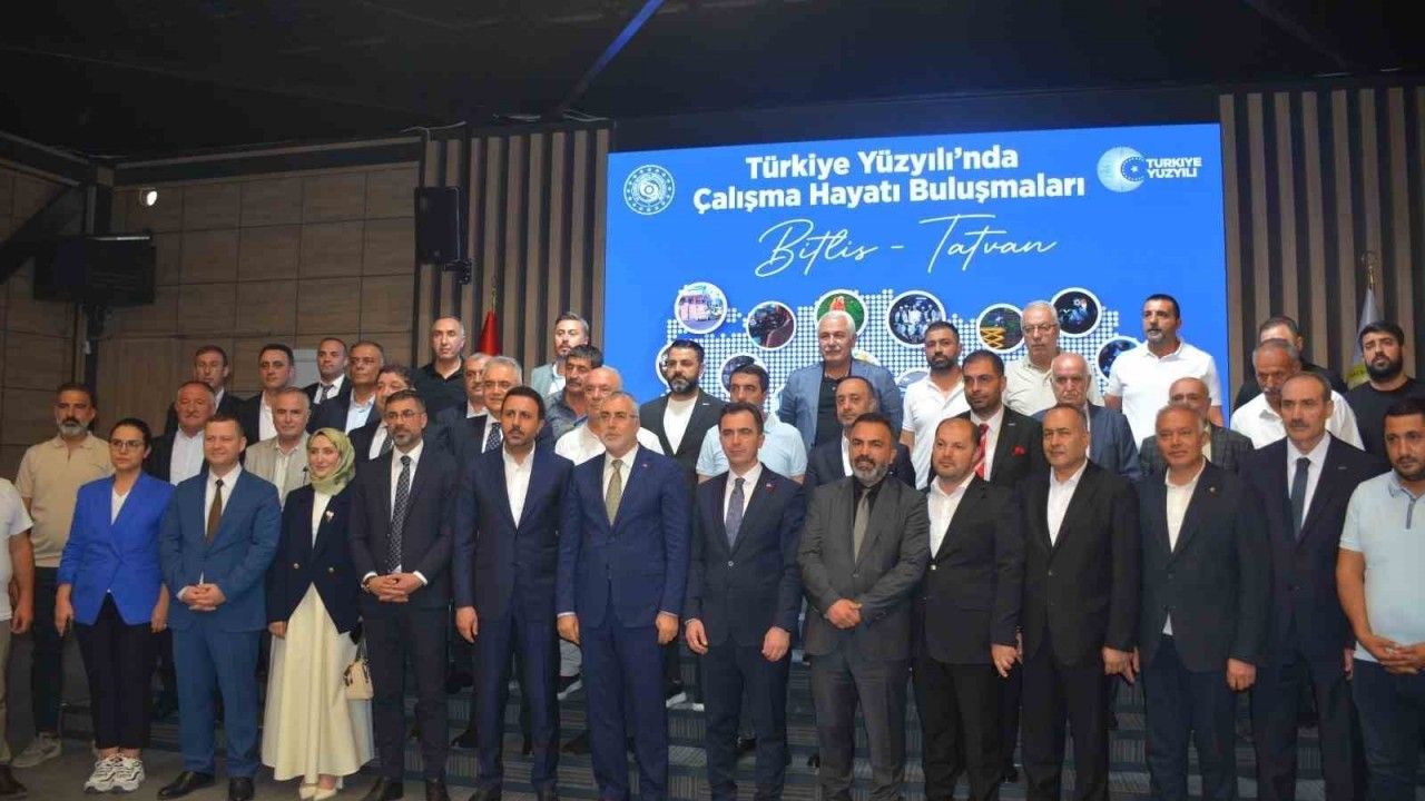 Türkiye Yüzyılı’nda Çalışma Hayatı Buluşmaları" kapsamında Bitlis’in Tatvan ilçesinde sektör temsilcileri ve iş adamlarıyla bir araya gelen Bakan Vedat Işıkhan, enflasyonu düşürmeye yönelik yürütülen ekonomik politikaların Bitlis’in iş dünyasında olumlu etkiler oluşturduğunu söyledi. TRB2 Bölgesi’ndeki güncel verilere de değinen Bakan Işıkhan, "Bölgede istihdam oranı yüzde 39,5, işsizlik oranı yüzde 15,3, iş gücüne katılım oranı ise yüzde 46,6’dır. İŞKUR aracılığıyla 2002 yılından 2025 Mayıs ayı sonuna kadar Bitlis’te toplam 36 bin 500 vatandaşımız işe yerleştirilmiştir" dedi.