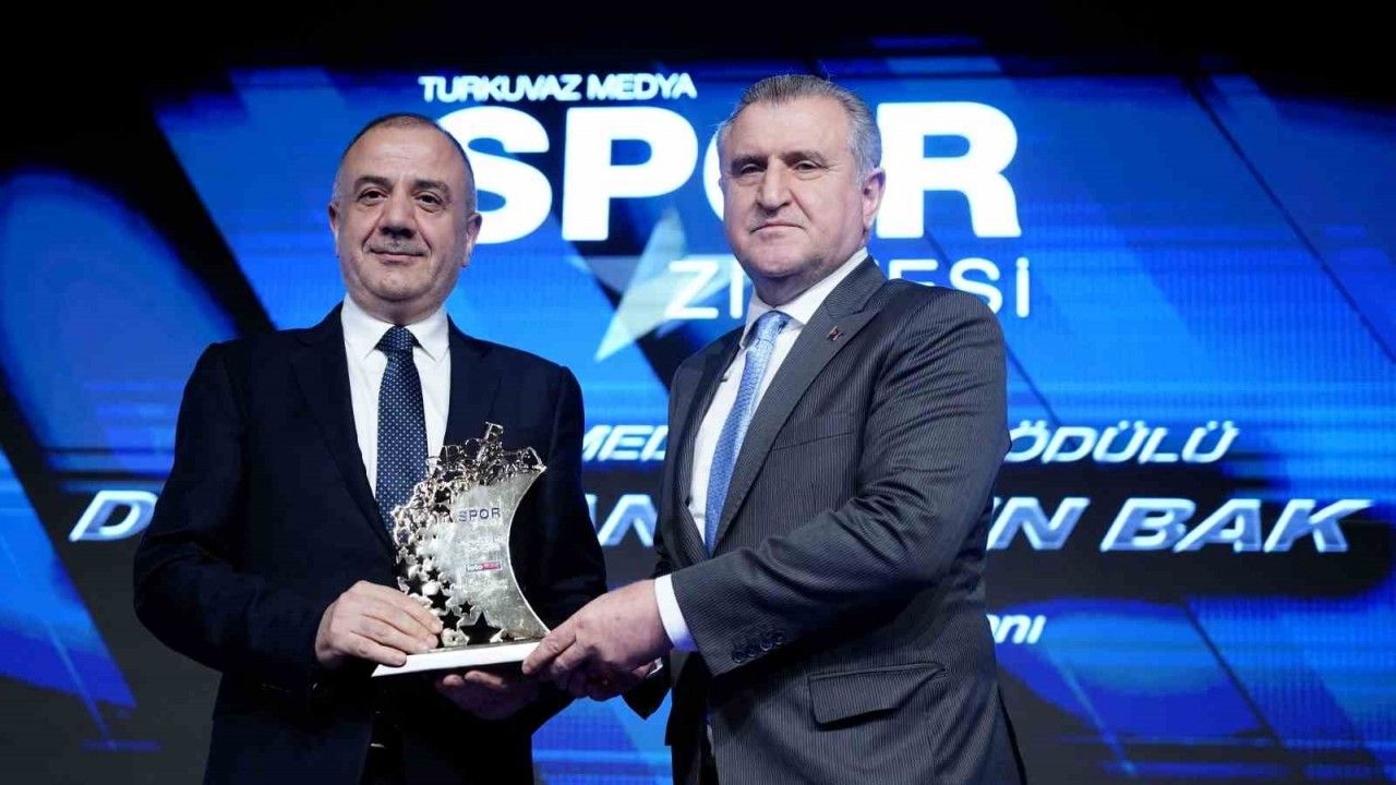 Osman Aşkın Bak’a konuşmasının ardından Turkuvaz Medya Onur Ödülü takdim edildi.