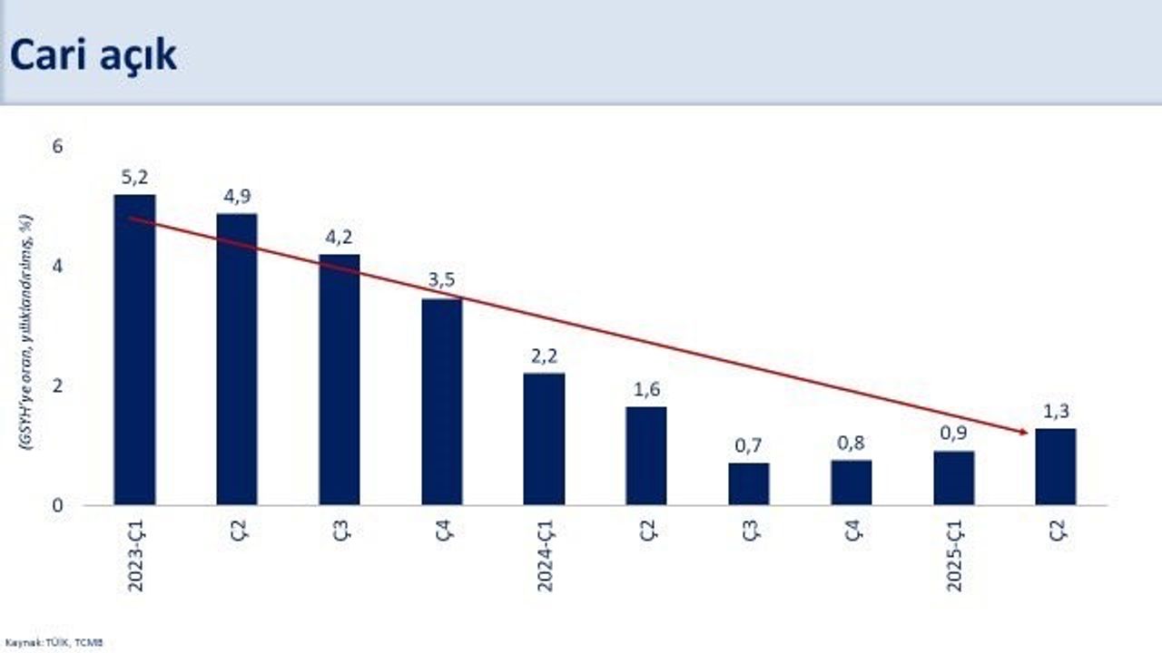 Şimşek, 2025 yılının ikinci çeyreğinde büyüme takvim ve düşük baz etkilerinin de katkısıyla yıllık yüzde 4,8 gerçekleştiğini hatırlatarak, "İmalat sanayi, yüksek teknolojili üretimdeki güçlü artışın desteğiyle 12 çeyreğin en iyi performansını sergiledi. Tüketim ve yatırım dengeli seyrini sürdürdü. Ticaret ortaklarımızın yaklaşık yüzde 2 ile görece düşük büyümesine ve öne çekilen talebe rağmen cari açığın milli gelire oranı yıllık yüzde 1,3 ile sürdürülebilir seviyelerde kalmaya devam etti" ifadelerine yer verdi.