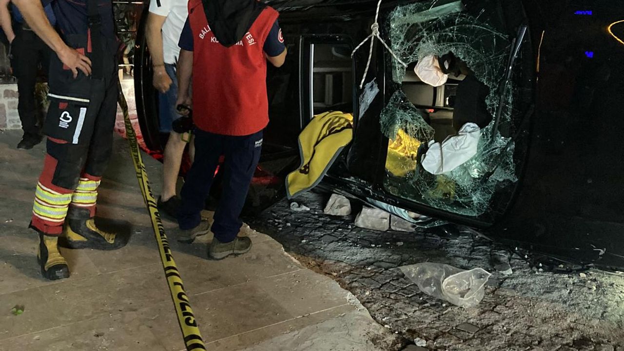Naz Ustalı’nın kullandığı 10 US 128 plakalı otomobil, Mithatpaşa Mahallesi 15 Eylül Caddesi’nde yol kenarındaki büfe ile otelin duvarına çarparak devrildi.