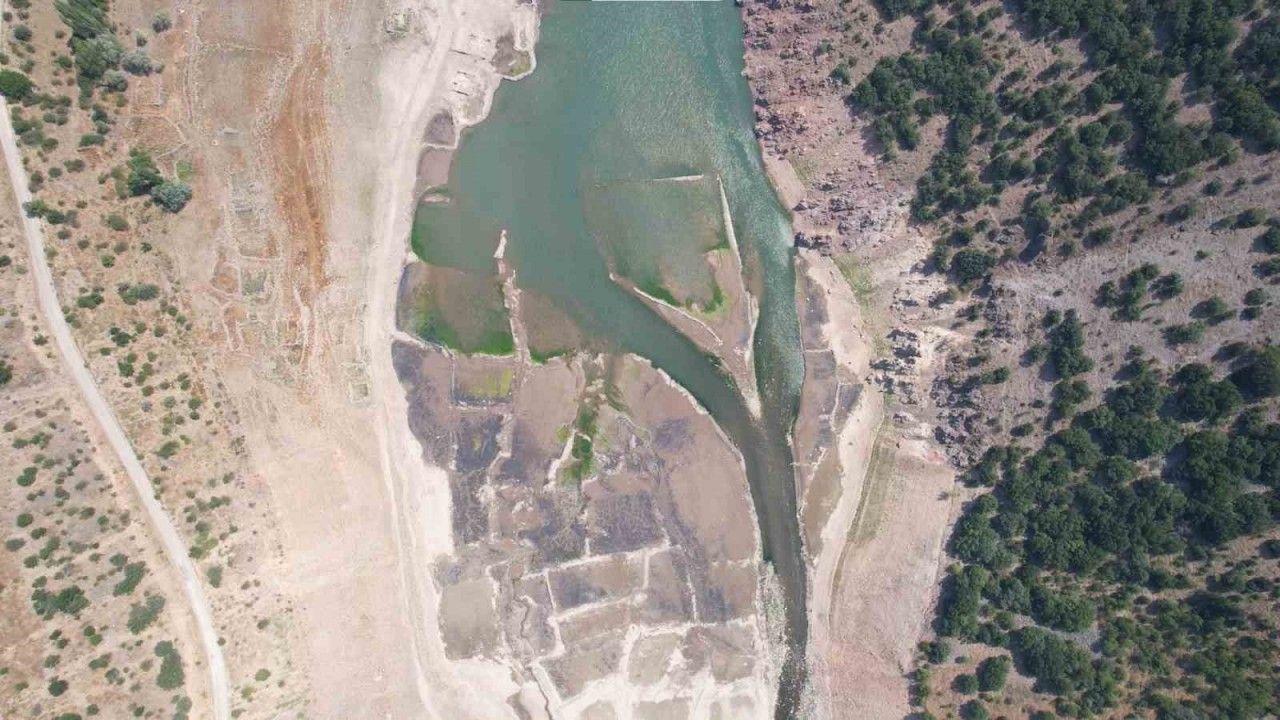 Ankara’nın içme suyu ihtiyacını karşılayan Çamlıdere Barajı’nda, kuraklık ve mevsimsel düşüş nedeniyle su seviyesi kritik seviyelere indi. Baraj sularının büyük oranda çekilmesiyle birlikte, yıllar önce su altında kalan eski bir köy yerleşimi yeniden gün yüzüne çıktı. Kuruyan bölgelerde yol izleri, taş duvar temelleri ve eski yapı kalıntıları net biçimde görünür hale geldi.