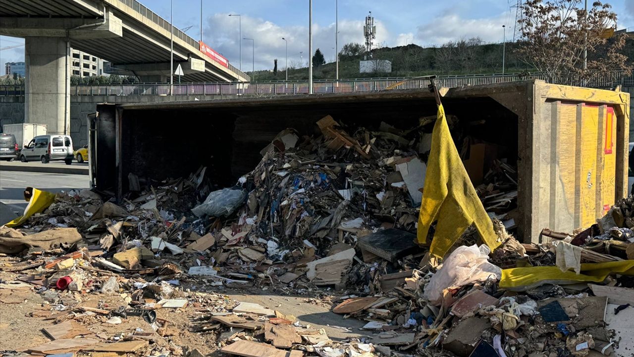 İSTANBUL (AA) - Başakşehir'de çekyat malzemeleri yüklü hafriyat kamyonunun devrilmesi sonucu yol trafiğe kapatıldı.