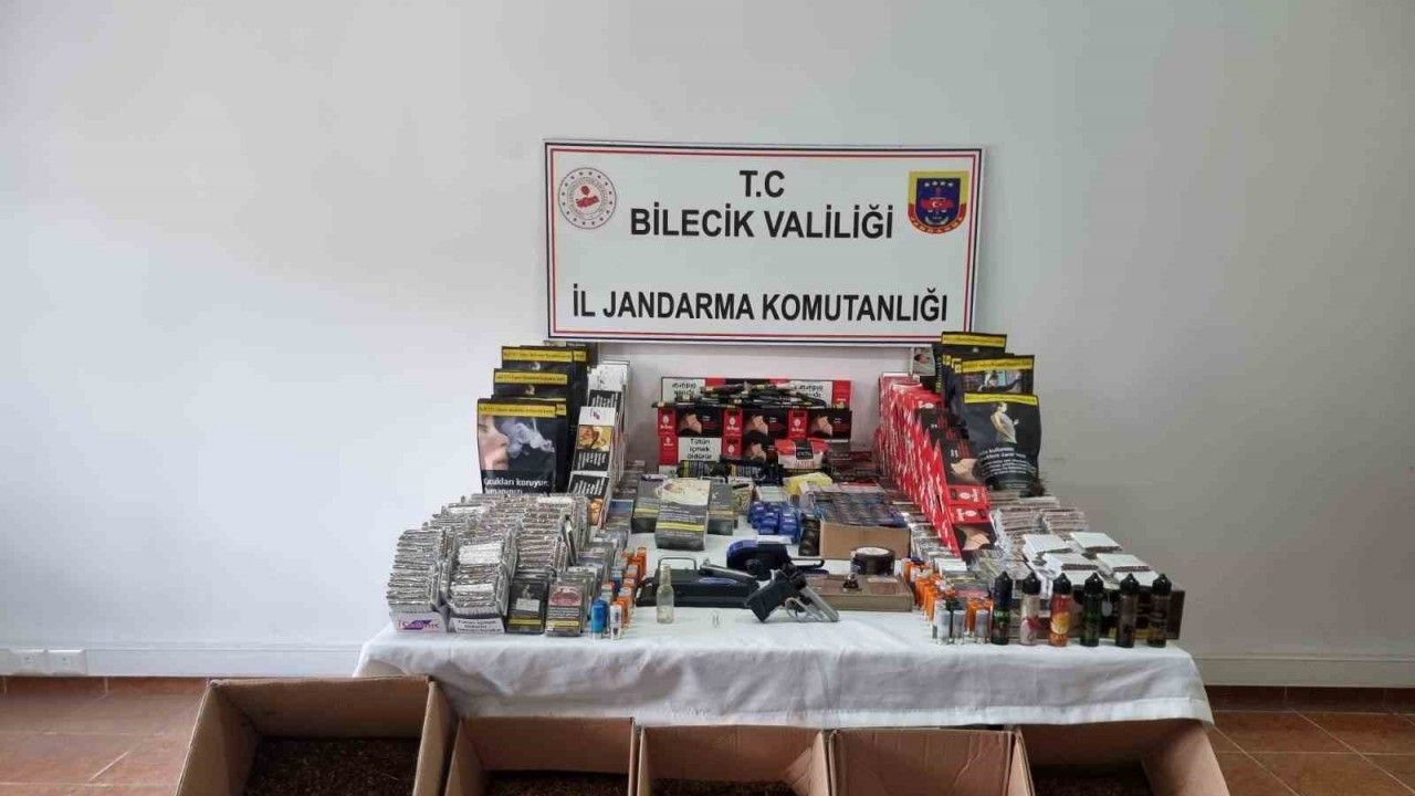 Bilecik’te jandarma ekiplerince düzenlenen operasyonda çok miktarda narkotik madde, kaçak tütün ürünleri ve ruhsatsız silahlar ele geçirildi. Ekiplerce yakalanan 4 şüpheli hakkında soruşturma başlatıldı.