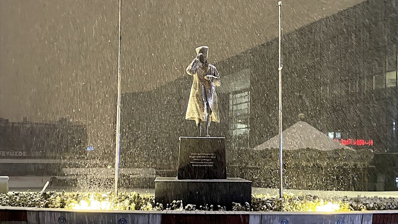 Şehir merkezinde gece saatlerinde başlayan kar yağışının ardından cadde ve sokaklar ile evlerin çatıları beyaza büründü.