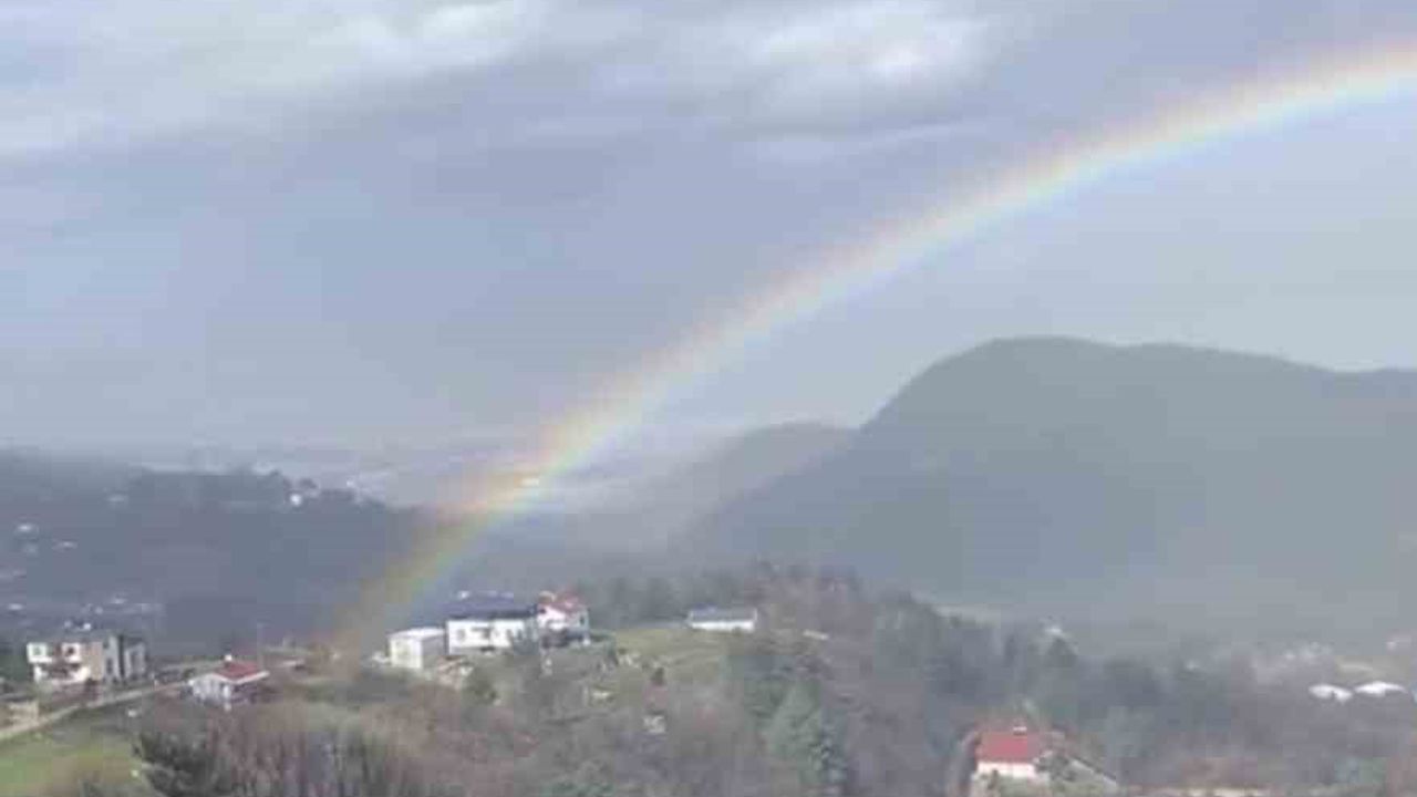 O anlara tanıklık eden vatandaşlar, gökkuşağını cep telefonlarıyla görüntülerken, kısa süre etkili olan doğa olayı çevrede görsel bir şölen sundu. Gökyüzünde beliren gökkuşağı, bir süre sonra yavaş yavaş kayboldu.