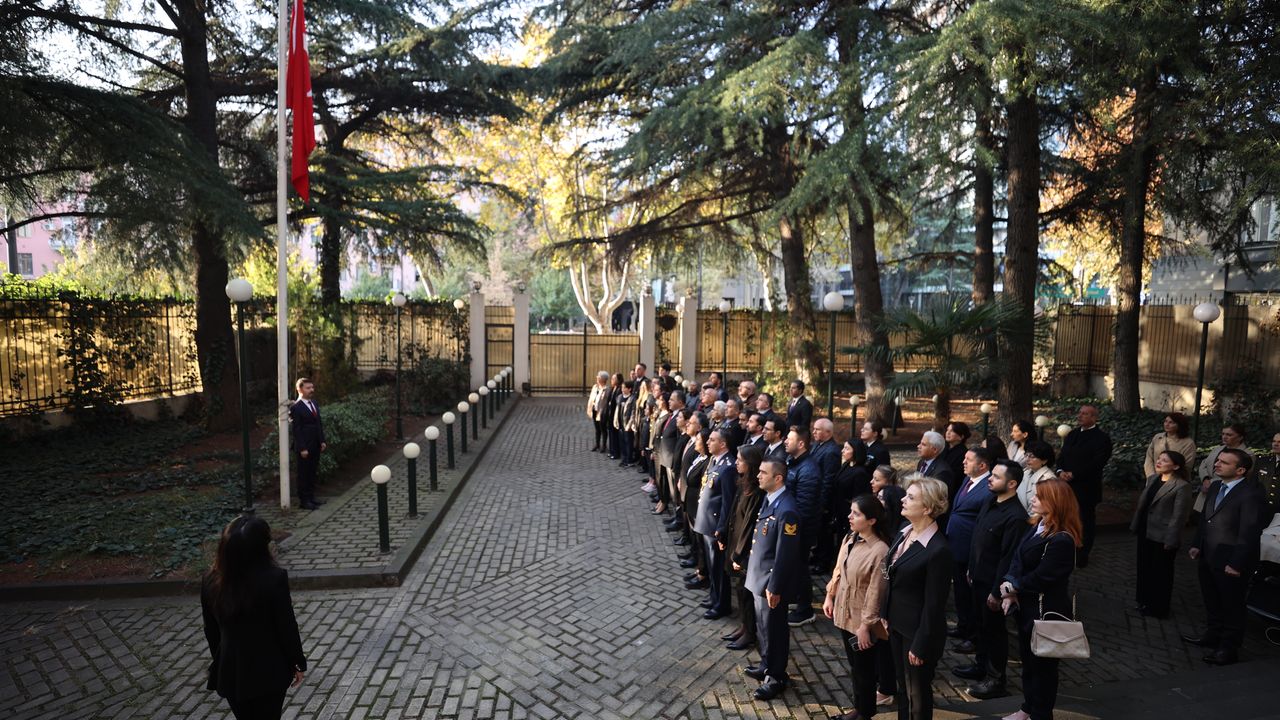 Türkiye'nin Tiflis Büyükelçiliği'nde 10 Kasım Atatürk'ü Anma Günü dolayısıyla düzenlenen törene büyükelçilik görevlileri, Gürcistan'daki Türk kurumlarının temsilcileri ve aileleri ile Türk iş insanları katıldı.