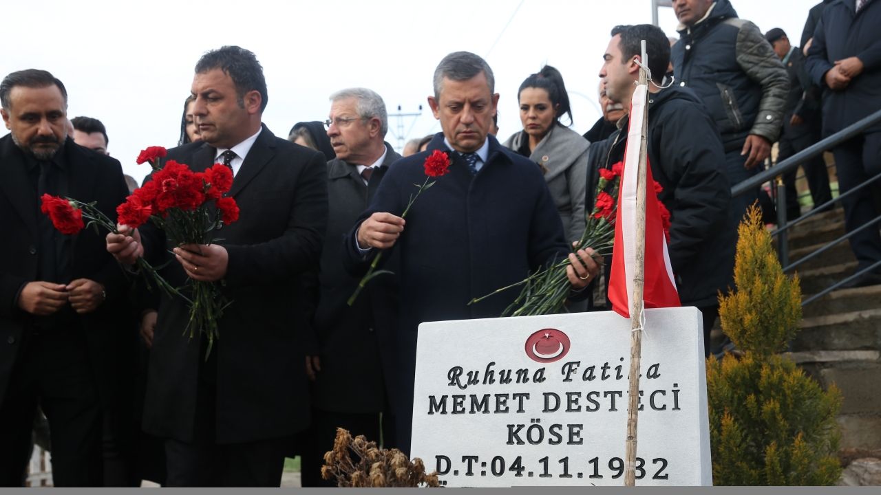 Depremlerde ölenlerin yakınlarına başsağlığı dileyen Özel, kabirlere karanfil bırakarak dua okudu.