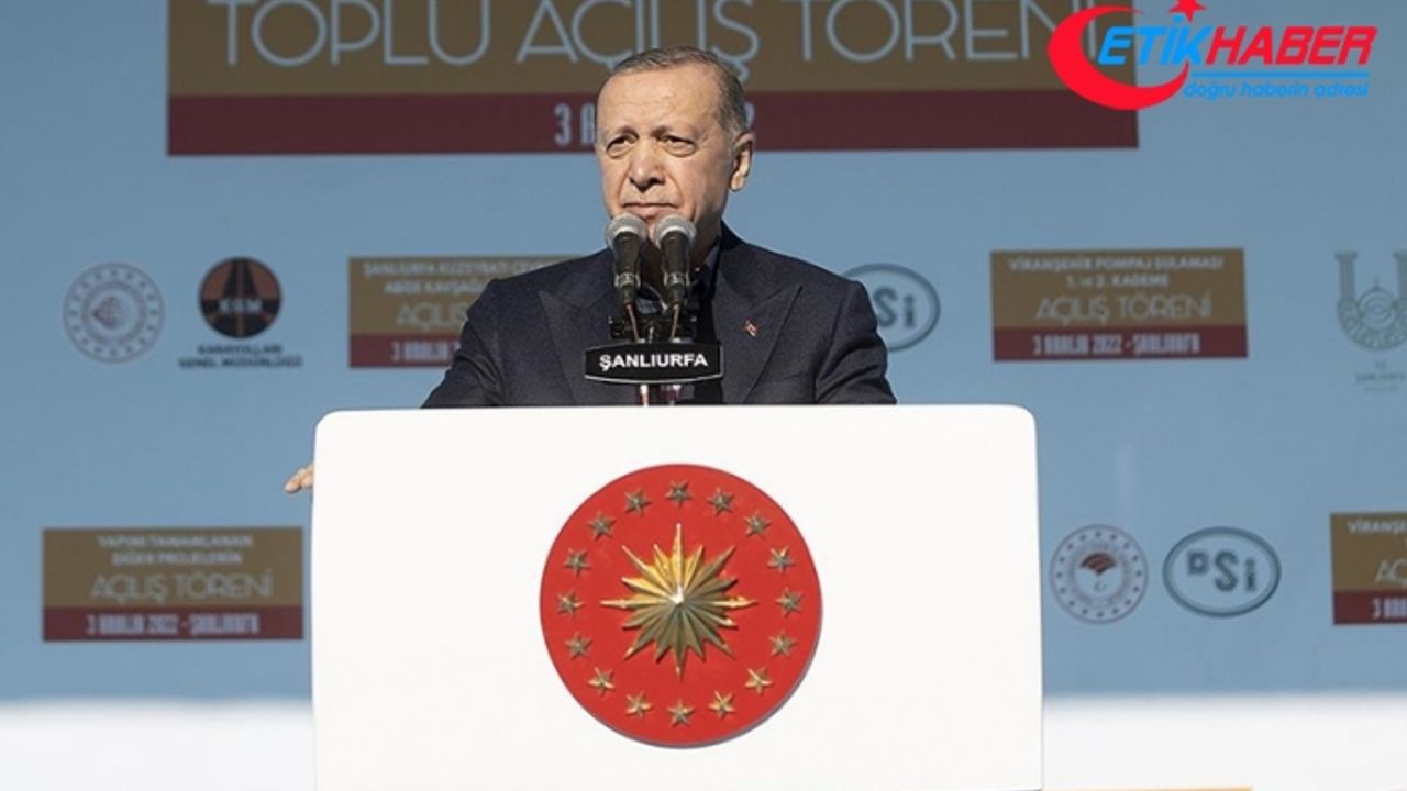 Cumhurbaşkanı Erdoğan, Şanlıurfa Kuzeybatı Çevre Yolu, Abide Kavşağı İlave Köprü Viranşehir Pompaj Sulaması 1. ve 2. Kademe ile yapımı tamamlanan diğer projelerin toplu açılış törenine katıldı.