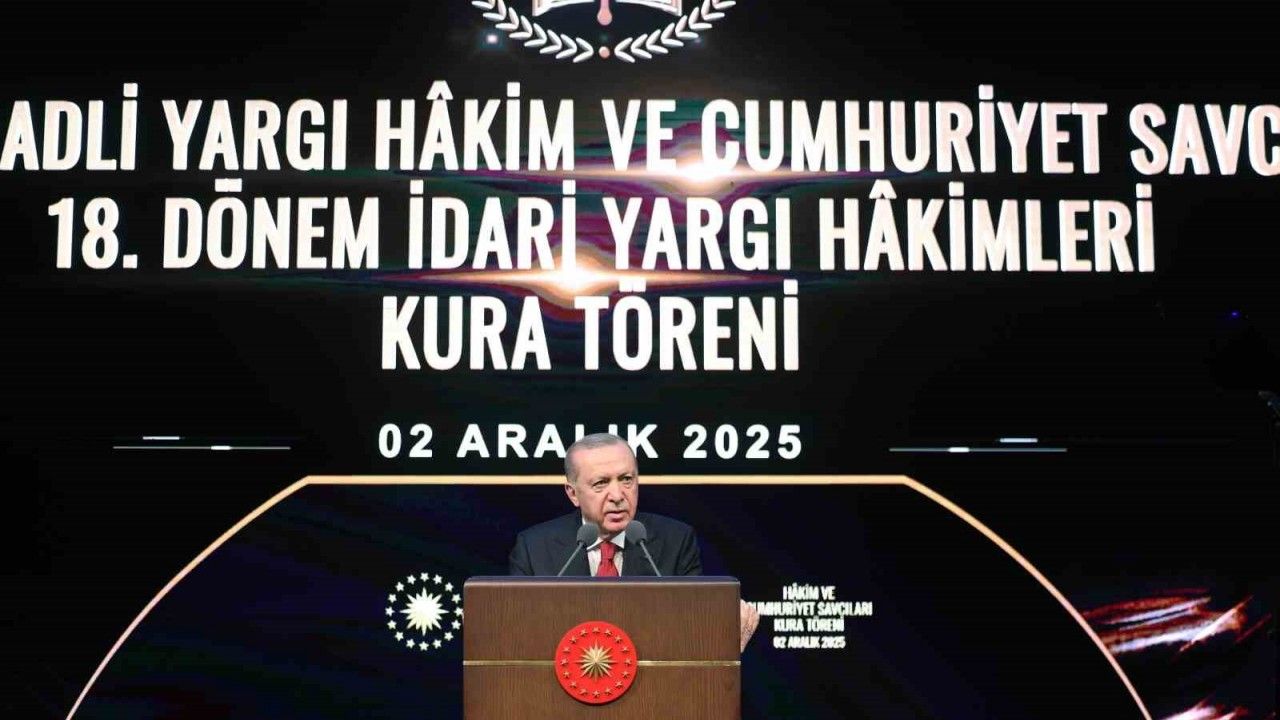 Kura çekimi bekleyenlere seslenen Erdoğan, "Sizler birazdan çekilecek kuralar neticesinde vazifelerinize başlayacak, memleketin her bir köşesinde adalet neferi olarak görev yapacaksınız. Maaşını alıp köşesine çekilen, mesaisi bitince arabasına binip evine dönen biri olarak değil; adalet için, adaletin tecellisi için, vicdanı hür, aklı hür, kalbi hür birer vatan evladı olarak inşallah fedakârca çalışacaksınız. Şüphesiz mücadelelerin en faziletlisi, adalet uğruna verilen mücadeledir. Sizler, devletimizin adalet neferleri olarak, bu mücadelenin kalbindesiniz. İbn-i Haldun’un veciz ifadesiyle "Adalet, halk arasına konulmuş bir terazidir." İşte bu terazinin dengesi, eğitimini aldığınız bilgiye dayanan, vicdanınızın rehberliğinde kaleminizden dökülen hükümlerle sağlanacaktır. Talip olduğunuz sorumluluğu layıkıyla ifa etmenin yolu; çok çalışmaktan, vicdanlı ve sağduyulu davranmaktan, basiret ve feraset sahibi olmaktan geçiyor. Önünüze gelecek her dosyanın içinde en az bir insanın hikayesi, en az bir insanın istikbali, umudu, hayalleri ve kaderi olduğunu lütfen unutmayın. Her birinizin, bugünden itibaren artık bu yüksek hassasiyetlerle vazifenizi yerine getireceğinize yürekten inanıyorum. Duam odur ki; meslek hayatınız boyunca, fikriniz de, zikriniz de, hükmünüz de daima adalet olsun. Cenab-ı Allah hepinizin yar ve yardımcısı olsun." İfadelerini kullandı.