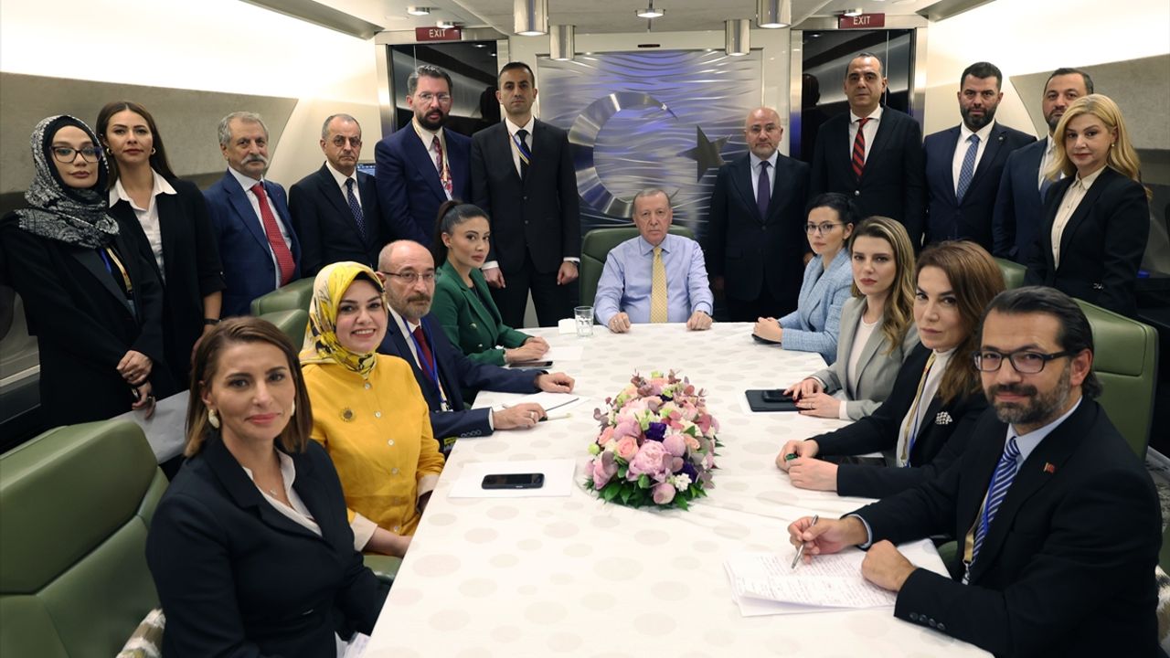 Erdoğan, 8 Kasım Zafer Günü törenine katılmak üzere gittiği Azerbaycan'dan Türkiye'ye dönüşünde uçakta gazetecilere açıklamalarda bulundu, soruları yanıtladı.