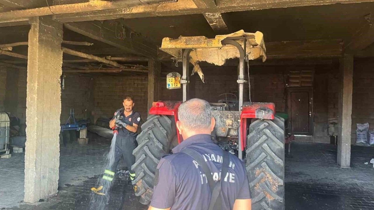 Adıyaman’da depoda bulunan bir traktör alev alarak yandı.