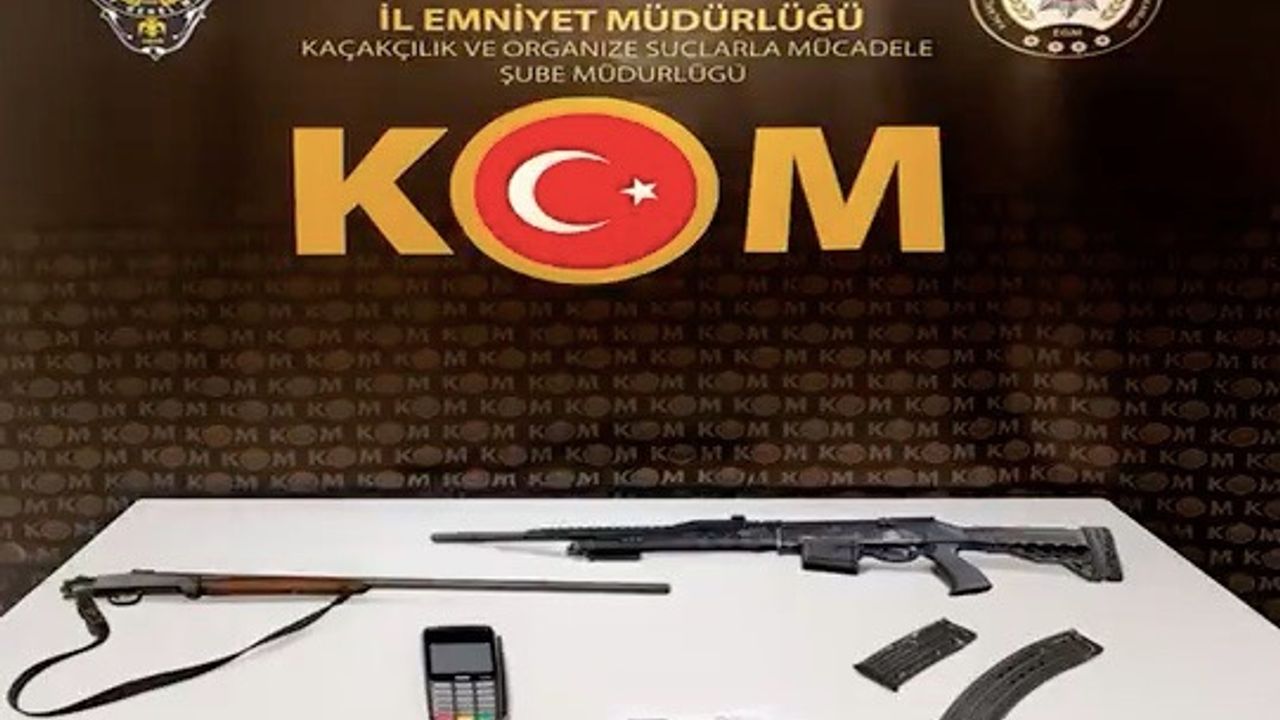 Adreslerdeki aramalarda, 2 tüfek ve bir iş yerine ait ödeme fişi ele geçirildi, operasyonda 3 kişi gözaltına alındı.