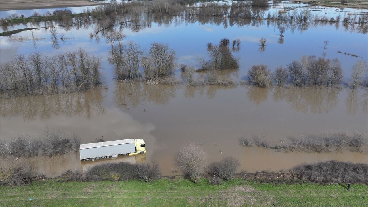 Bulgaristan uyruklu Asen Atanasov'un kullandığı tır, Tunca Nehri'nin taşkın nedeniyle su bastığı Avarız köyü yolunda sürücüsünün direksiyon hakimiyetini kaybetmesi sonucu yoldan çıktı.