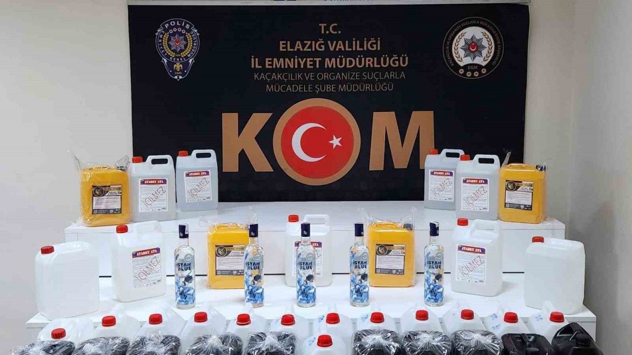 Elazığ Cumhuriyet Başsavcılığı koordinesinde, İl Emniyet Müdürlüğü Kaçakçılık ve Organize Suçlarla Mücadele Şube Müdürlüğü tarafından sahte alkollü içki ticareti yapan, toplum sağlığını tehlikeye düşüren ve haksız kazanç elde eden şahıslara yönelik çalışma yapıldı. Yapılan çalışmalarda sahte alkol üretiminde kullanılan 190 litre etil alkol ve 2 adet alkol kiti ele geçirildi. Çalışmalarda 11 şüpheli şahıs hakkında adli işlem yapıldığı bildirildi.