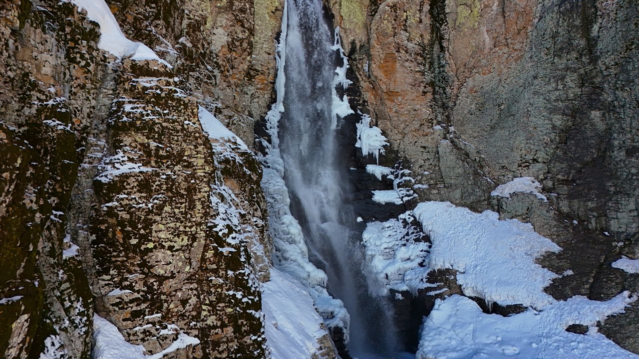 Bölgede hava sıcaklığının artmasıyla erimeye başlayan kardan akan sular, şelaleye yeniden can verdi.