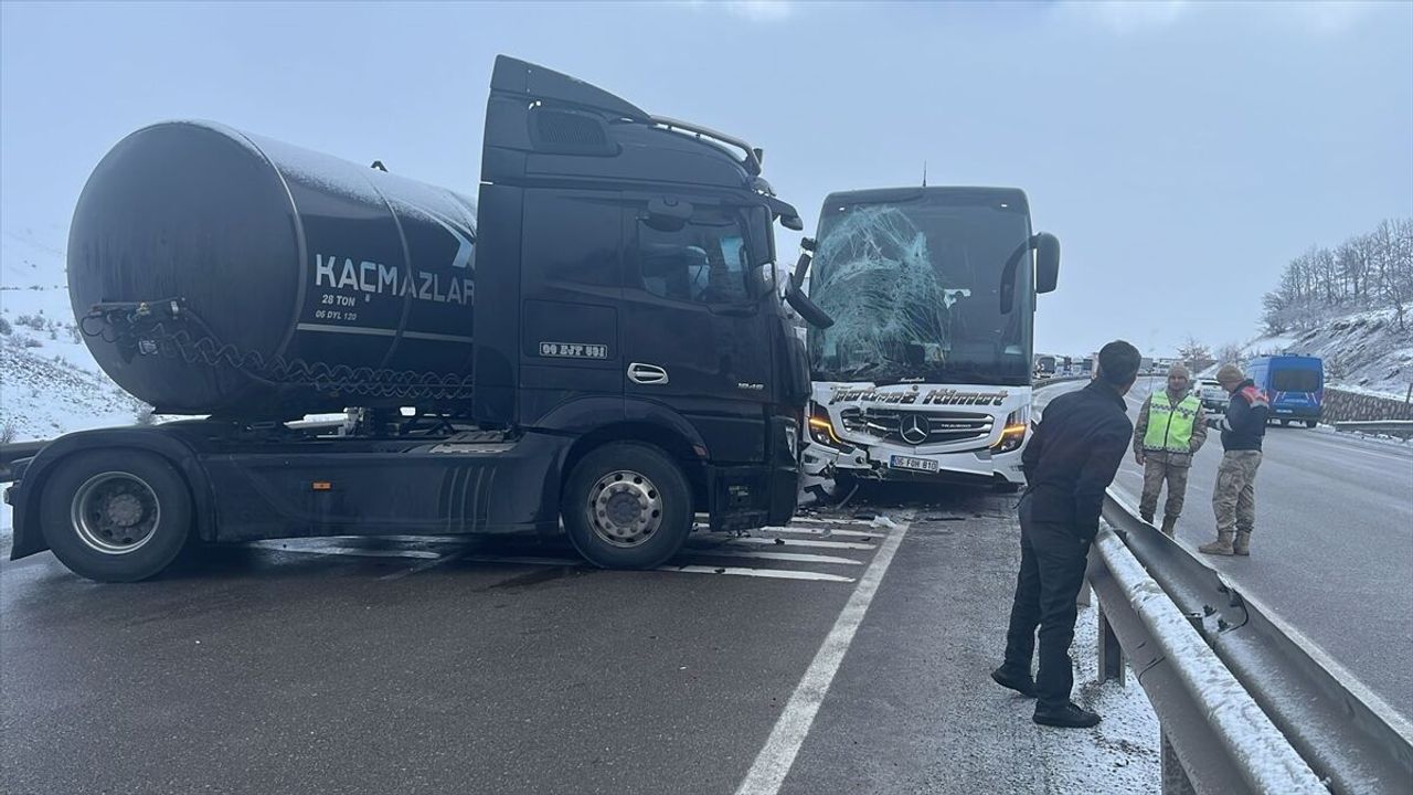 Kar yağışının etkili olduğu Hacı Hamza Mahallesi mevkisinde kayarak yola paralel duran M.S.K'nin kullandığı 06 EJT 591 plakalı tıra arkadan gelen T.U. idaresindeki 06 FOH 810 plakalı yolcu otobüsü çarptı.