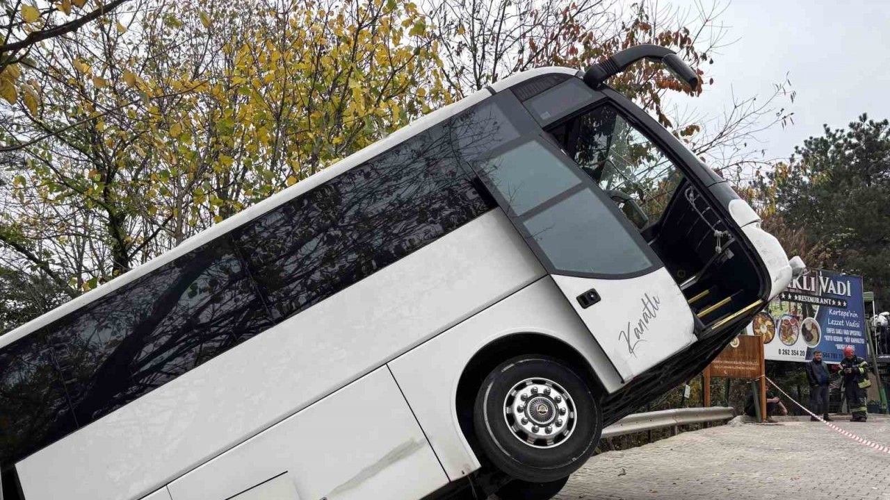 İHA- Kocaeli’nin Kartepe ilçesinde park halindeyken hareket eden tur otobüsü bariyeri aşıp şarampole düştü. Facianın eşiğinden dönüldüğü kazada yaralanan olmadı.