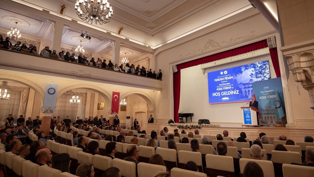 GÜ Rektörlük Yerleşkesi Mimar Kemaleddin Salonu'nda gerçekleşen 2025-2026 Akademik Yılı Açılış Töreni'ne Dışişleri Bakanı Hakan Fidan, Rektör Prof. Dr. Uğur Ünal, akademisyenler ve öğrenciler katıldı.