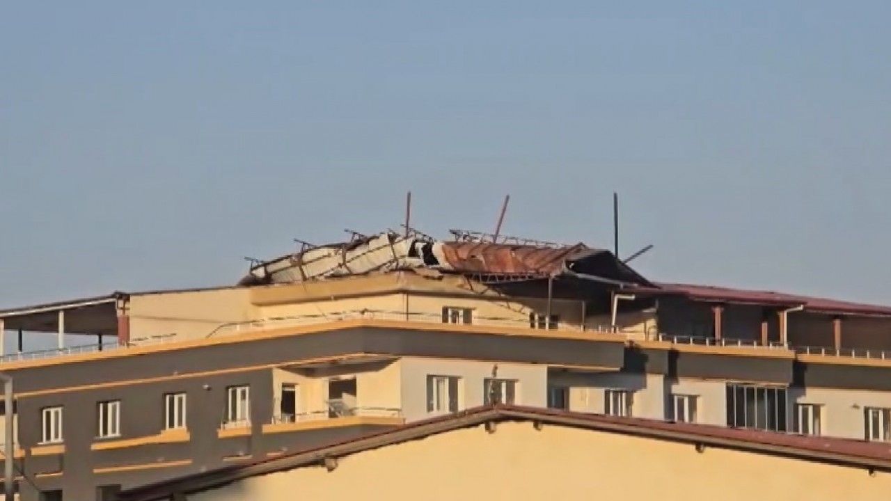 İHA- Gaziantep’in İslahiye ilçesinde şiddetli fırtına, depremde hasar aldıktan sonra tadilatı yapılmayan bir binanın çatısını uçurdu.