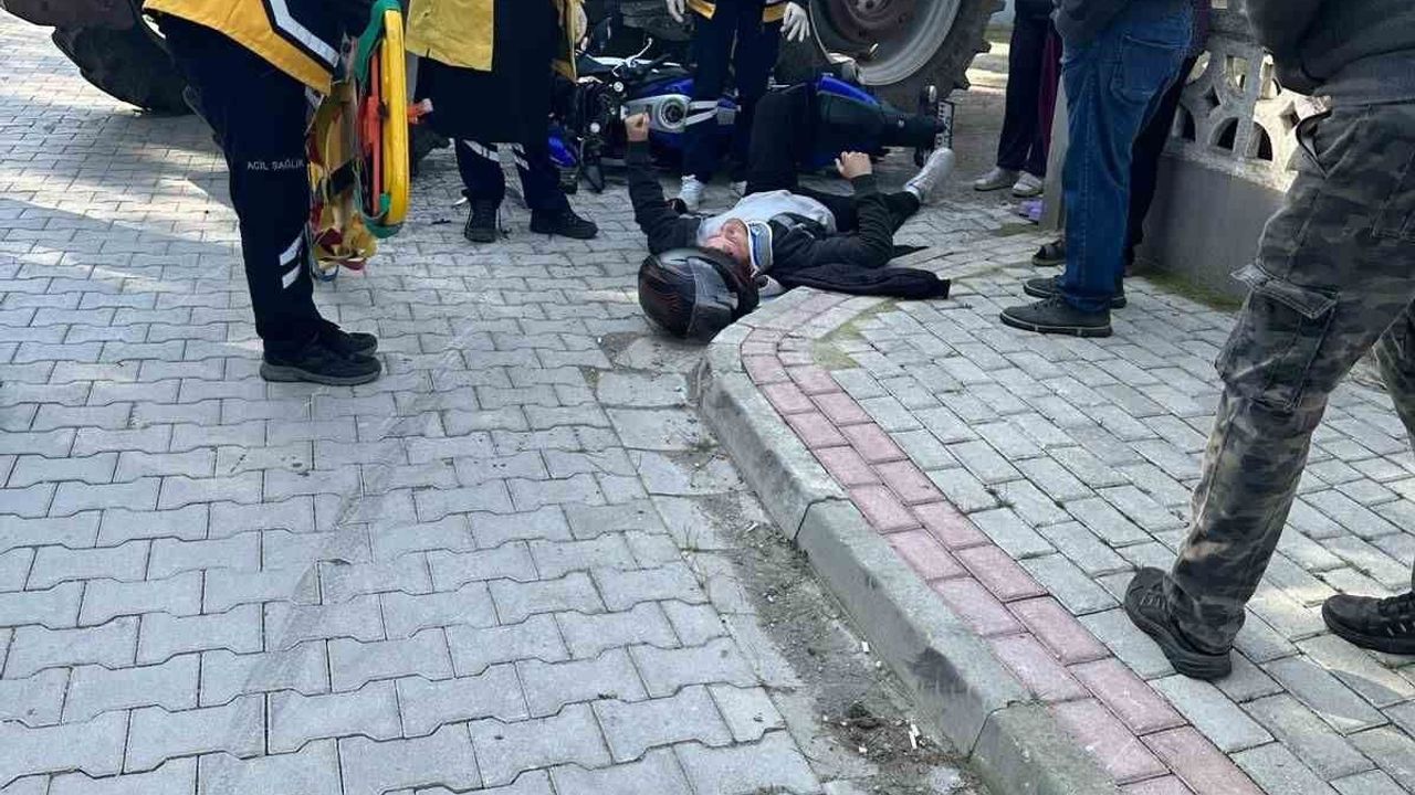 Balıkesir’in Gönen ilçesine bağlı Hasanbey Mahallesi’nde traktör ile motosikletin çarpışması sonucu meydana gelen trafik kazasında, motosiklet sürücüsü yaralandı.