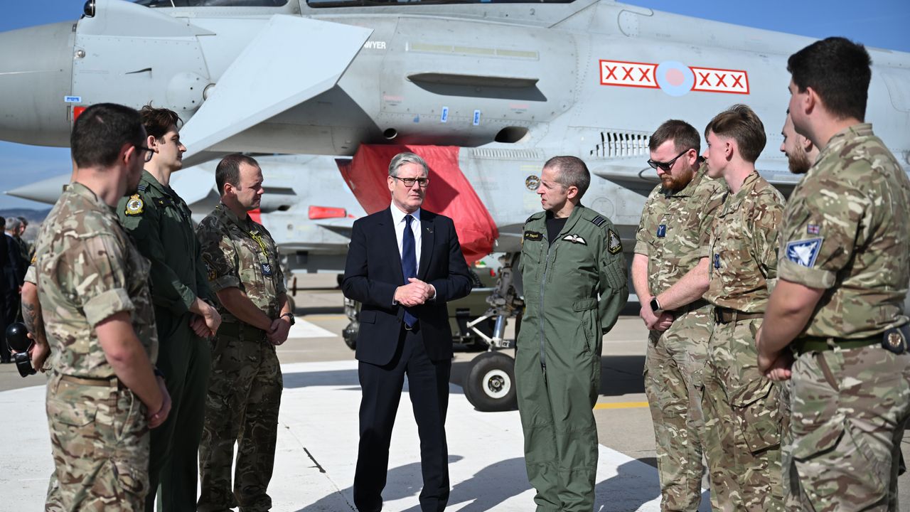 Eurofighter Typhoon uçaklarını inceledikten sonra pilotları ve teknik ekiple kısa süre sohbet eden Starmer'ın beraberinde İngiltere Savunma Bakanı John Healey ve İngiltere Hava Kuvvetleri Komutanı Orgeneral Harv Smyth de yer aldı.