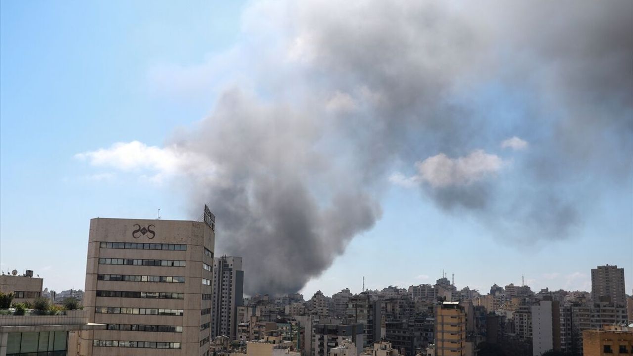 Beyrut'un nüfus yoğunluğu bulunan noktaları da dahil Dahiye bölgesinde hedef alınan noktalardan dumanlar yükseliyor.
