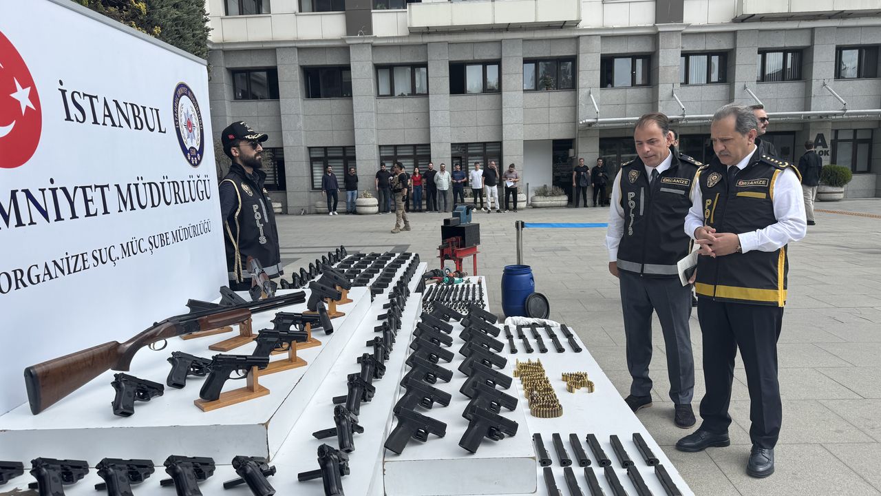 İstanbul Emniyet Müdürü Selami Yıldız, operasyonlarda ele geçirilen silahların sergilendiği Vatan Caddesi'ndeki yerleşkede, personeli tebrik etti.