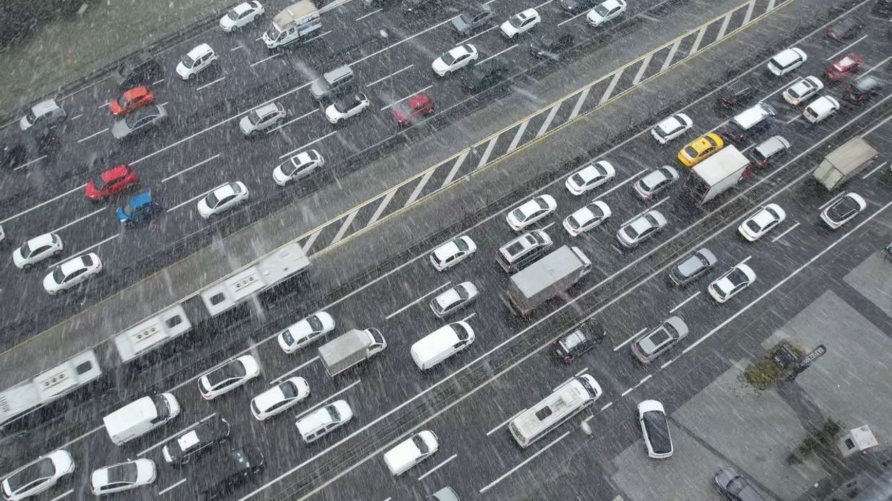 İstanbul’da etkisini gösteren kar yağışı sonrası trafik yüzde 90 seviyesine ulaşırken yoğunluk havadan görüntülendi.