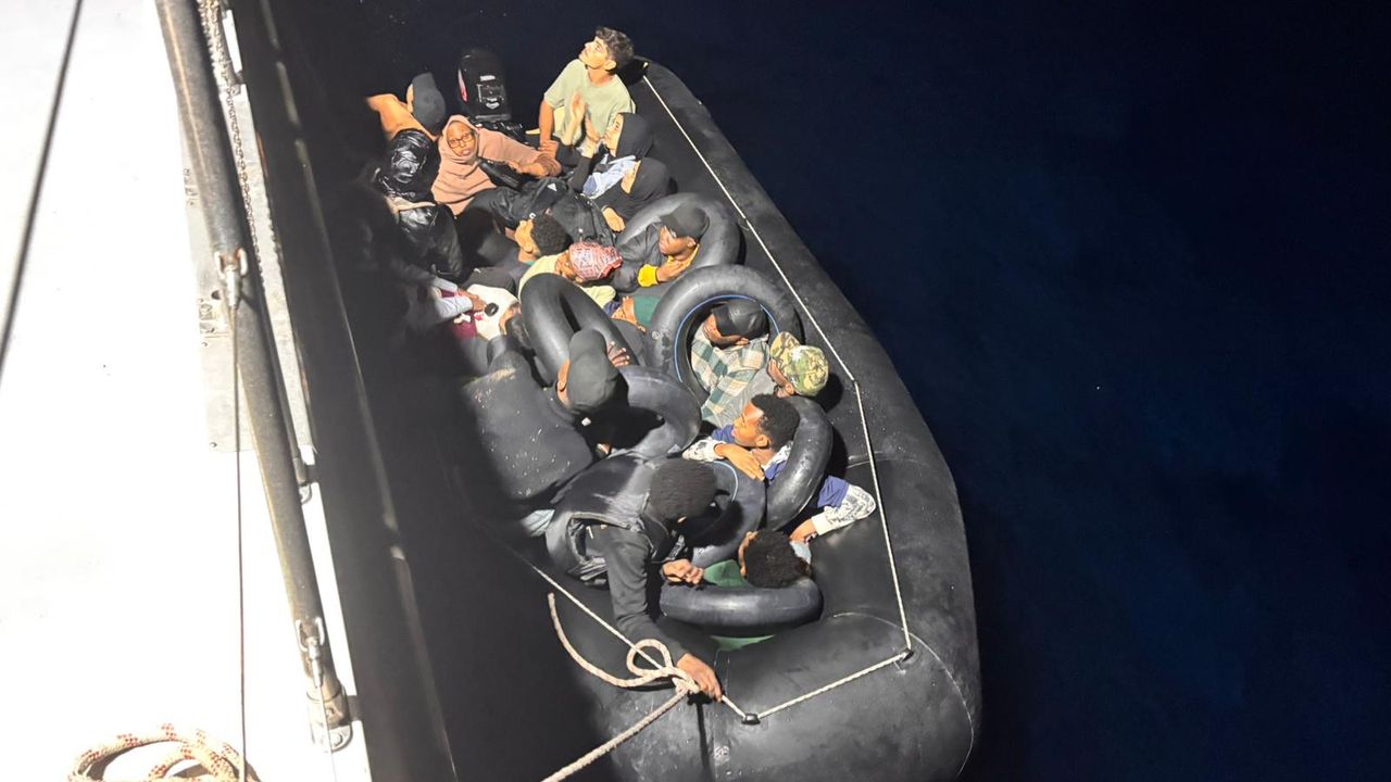 Ekipler, hareketli lastik bottaki 2'si çocuk 19 düzensiz göçmeni yakaladı.