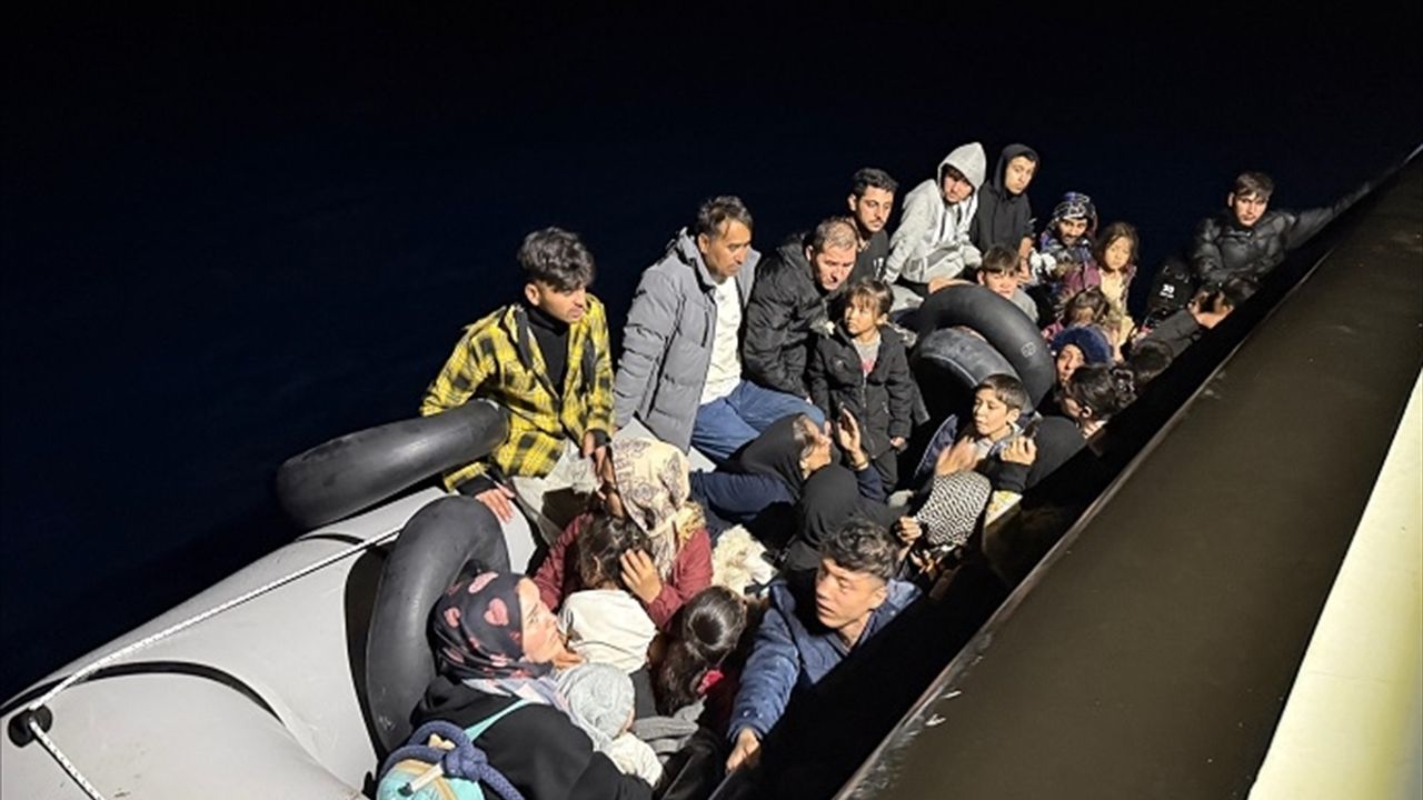 Ekipler, lastik bottaki 18'i çocuk 36 düzensiz göçmeni karaya çıkardı.