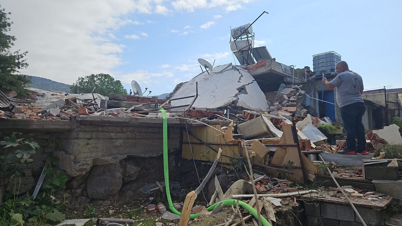 Patlamanın şiddetiyle evin iç kısmı büyük oranda yıkıldı, bina yanındaki iki mermer işletmesinde hasar oluştu.