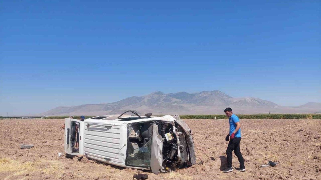 Karaman’da kontrolden çıkarak tarlaya takla atan panelvan minibüsün sürücüsü yaralandı.