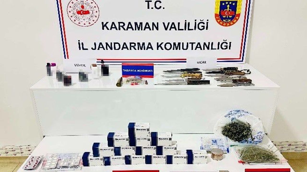 Karaman’da jandarmanın yaptığı uygulamalarda çeşitli suçlardan aranan 6 kişi tutuklanırken, uyuşturucu ve tarihi eser ele geçirildi.