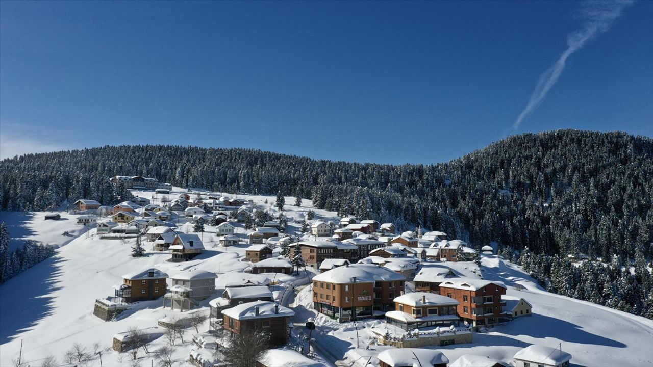 GİRESUN (AA) - Kar yağışıyla beyaza bürünen Giresun'un 1700 rakımlı Kulakkaya Yaylası, havadan kayda alındı.