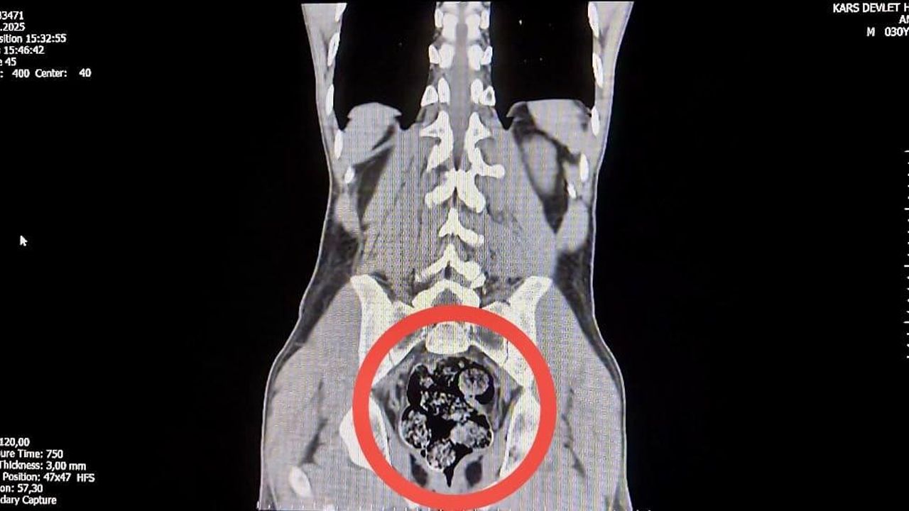 İl Emniyet Müdürlüğü’ne getirilen ve durumundan şüphelenilen kuryelerden Shekarbaghanı, detaylı arama için Kars Harakani Devlet Hastanesi’ne götürüldü. Hastanede yapılan emar ve röntgen kontrollerinde şüphelinin makatında cisim olduğu belirlendi. Yapılan cerrahi müdahalede, şüphelinin makatından 7 parça halinde 203,02 gram metamfetamin çıkarıldı.