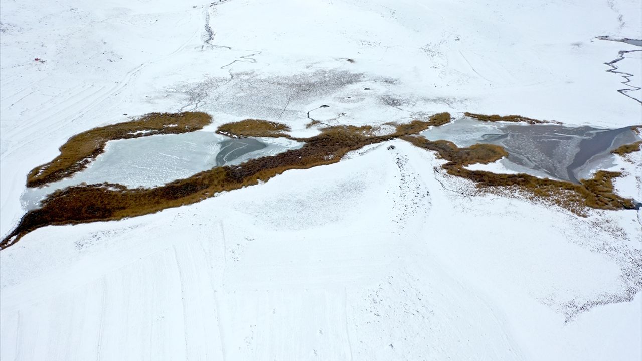Potansiyel doğal sit alanı kapsamında bulunan ve 2019'da Cumhurbaşkanlığı kararıyla 'kesin korunacak hassas alan' olarak tescillenen Lavaş Gölü'nün yüzeyi de soğukların etkisiyle dondu.