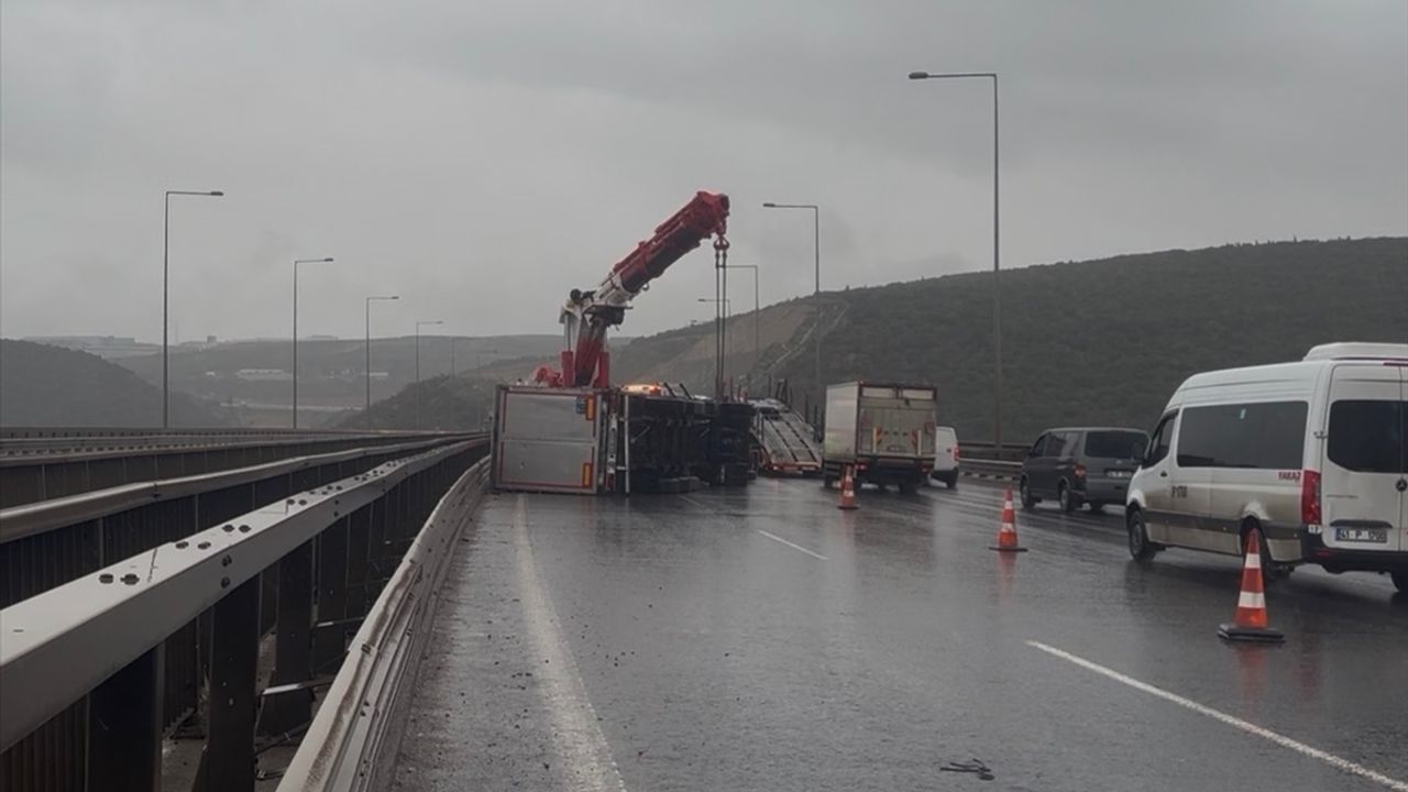 Osmangazi Köprüsü ile Kuzey Marmara Otoyolu arasındaki bağlantıyı sağlayan yolda fırtınanın etkisiyle 2 tır ve 1 kamyonet devrildi.