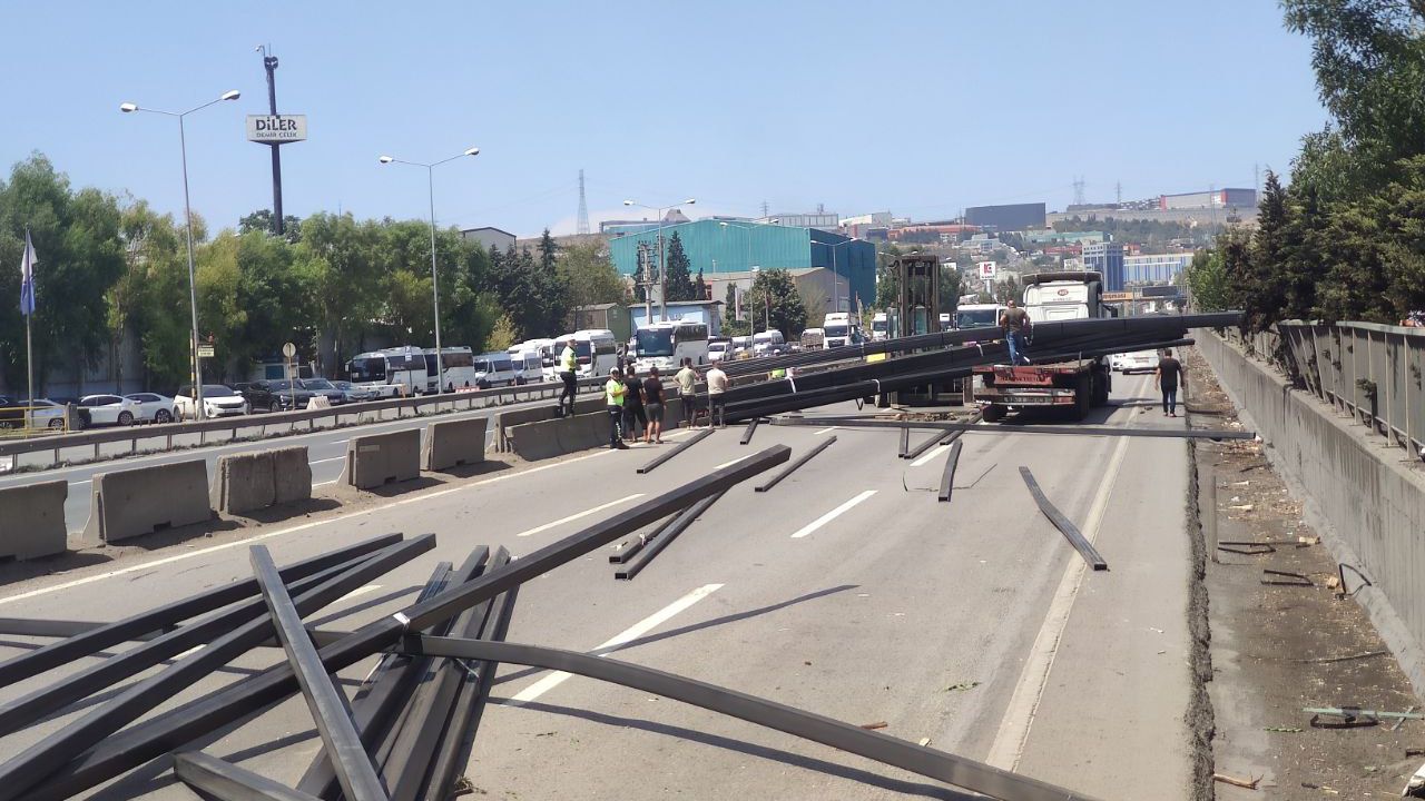 Düşen profiller çevredeki ağaçlara ve korkuluklara zarar verirken, kara yolunun İstanbul istikameti trafiğe kapatıldı.