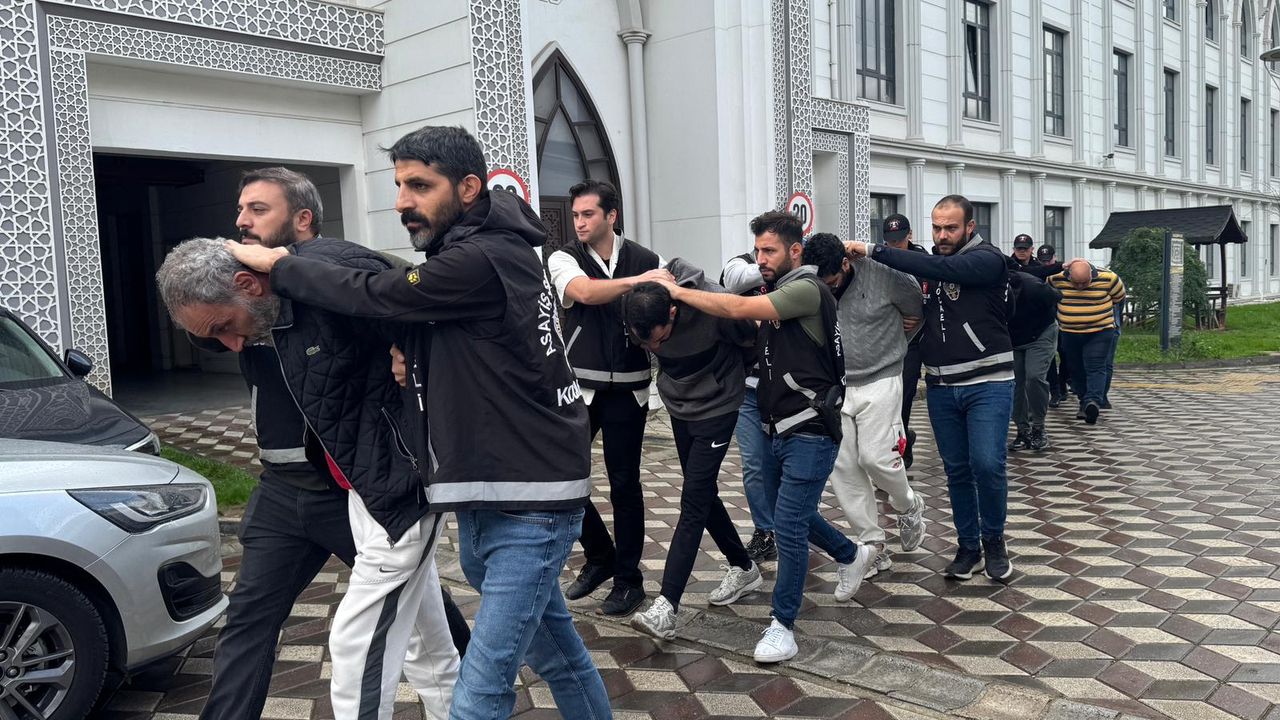 İş yeri sahibi K.O, oğlu İ.O, yeğeni A.A.O. ve zanlılar G.G, G.B, H.E, A.O.A, O.Y, Ö.A, G.D. ile A.O. güvenlik önlemleri altında İl Emniyet Müdürlüğünden çıkarıldı.