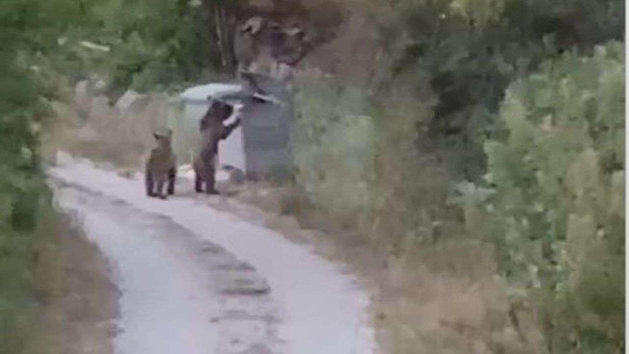 Tokat’ın Reşadiye ilçesindeki bir köyde aç kalan ayılar çöp konteynerlerine dadandı.