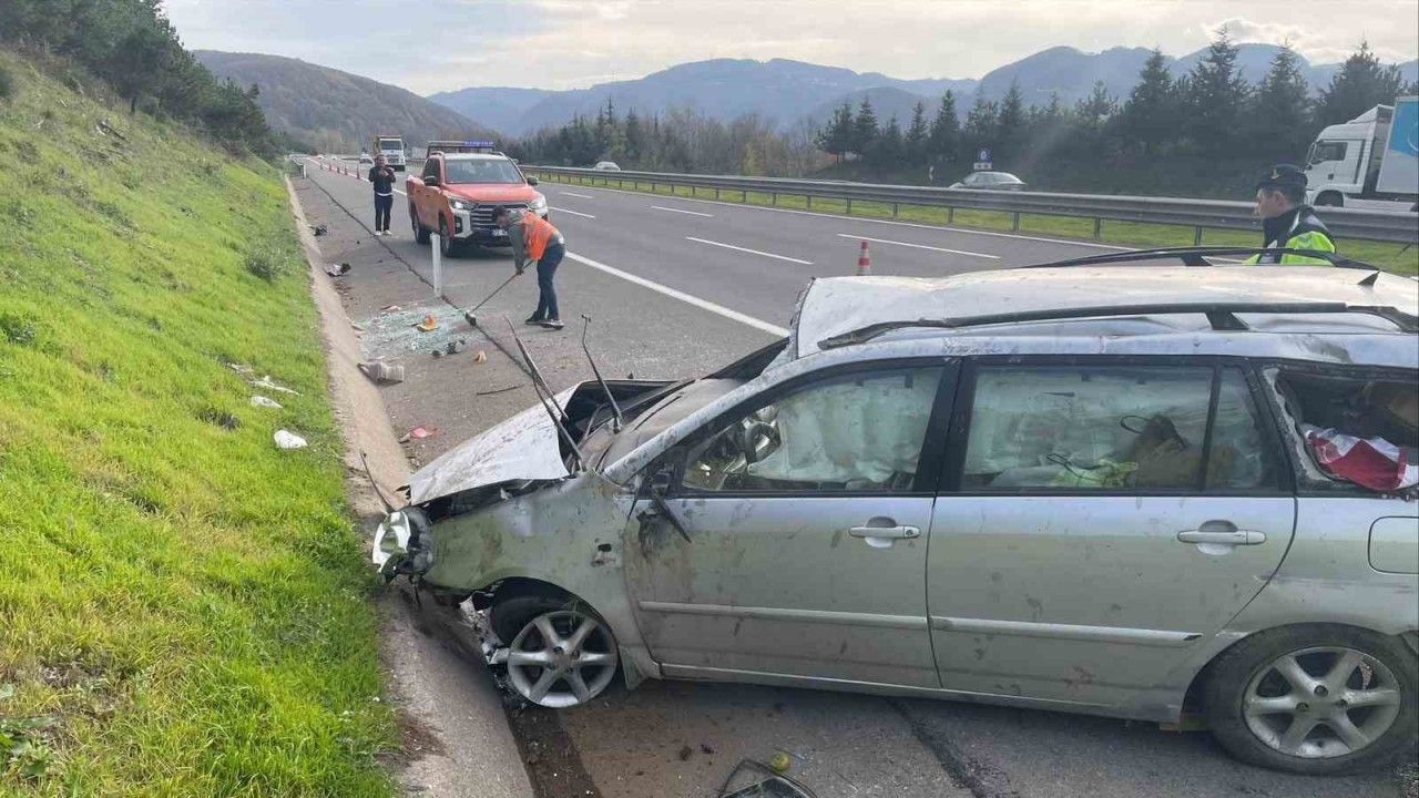 DÜZCE(İHA) – Anadolu Otoyolu Düzce geçişinde lastiği patlayan otomobil bariyere çarparak takla attı. Kazada otomobilde bulunan 2 kişi yaralandı.