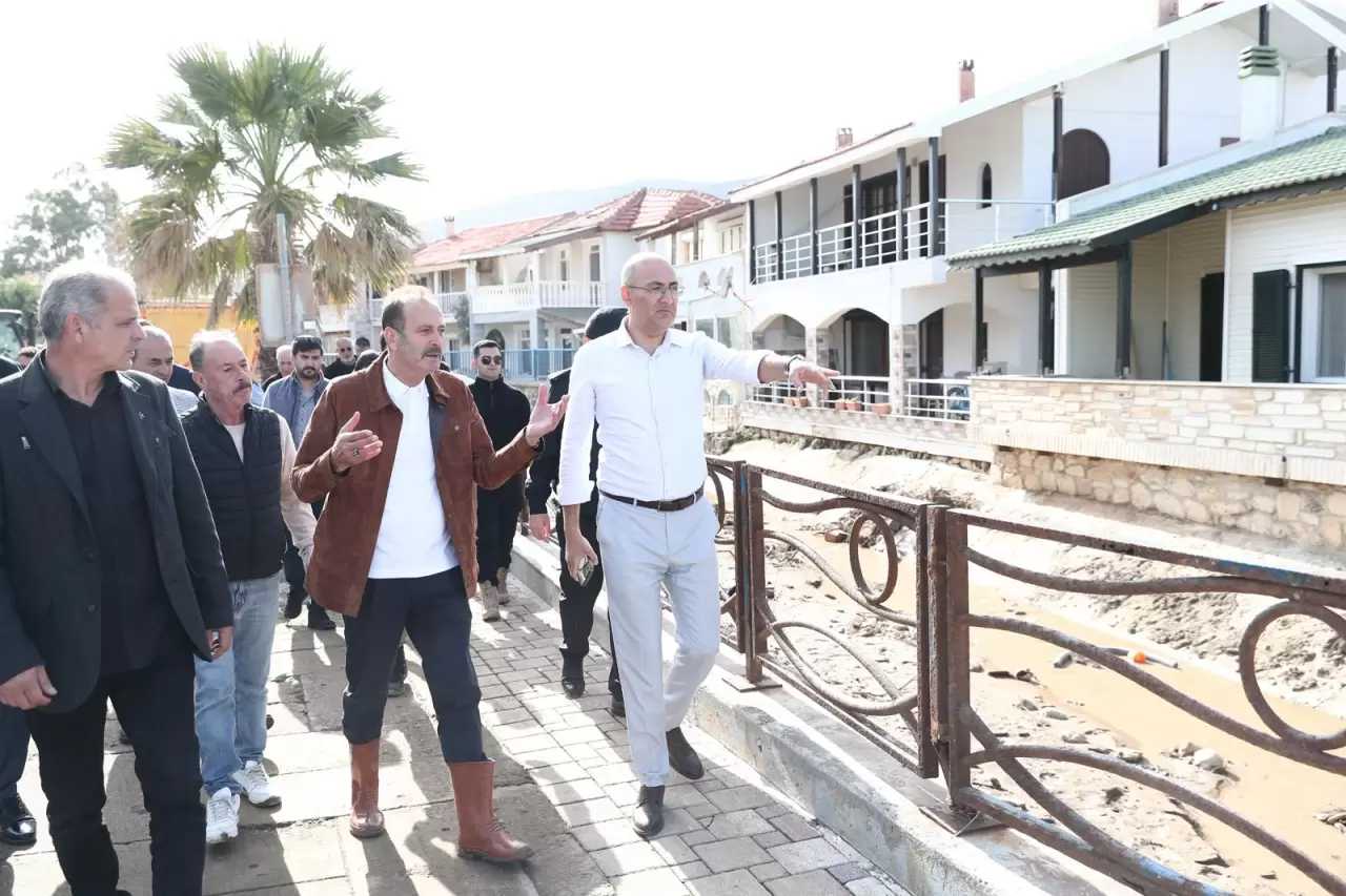 Foça’da aşırı yağışların meydana getirdiği zararın açtığı yaralar sarılmaya devam ediliyor. Yerinde tespitlerde bulunmak üzere bölgeye gelen MHP Genel Sekreter Yardımcısı, İzmir Milletvekili Tamer Osmanağaoğlu; AFAD yetkililerinden ve Aliağa Belediyesi Ekiplerinden bilgi alıp vatandaşlarla bir araya geldi.