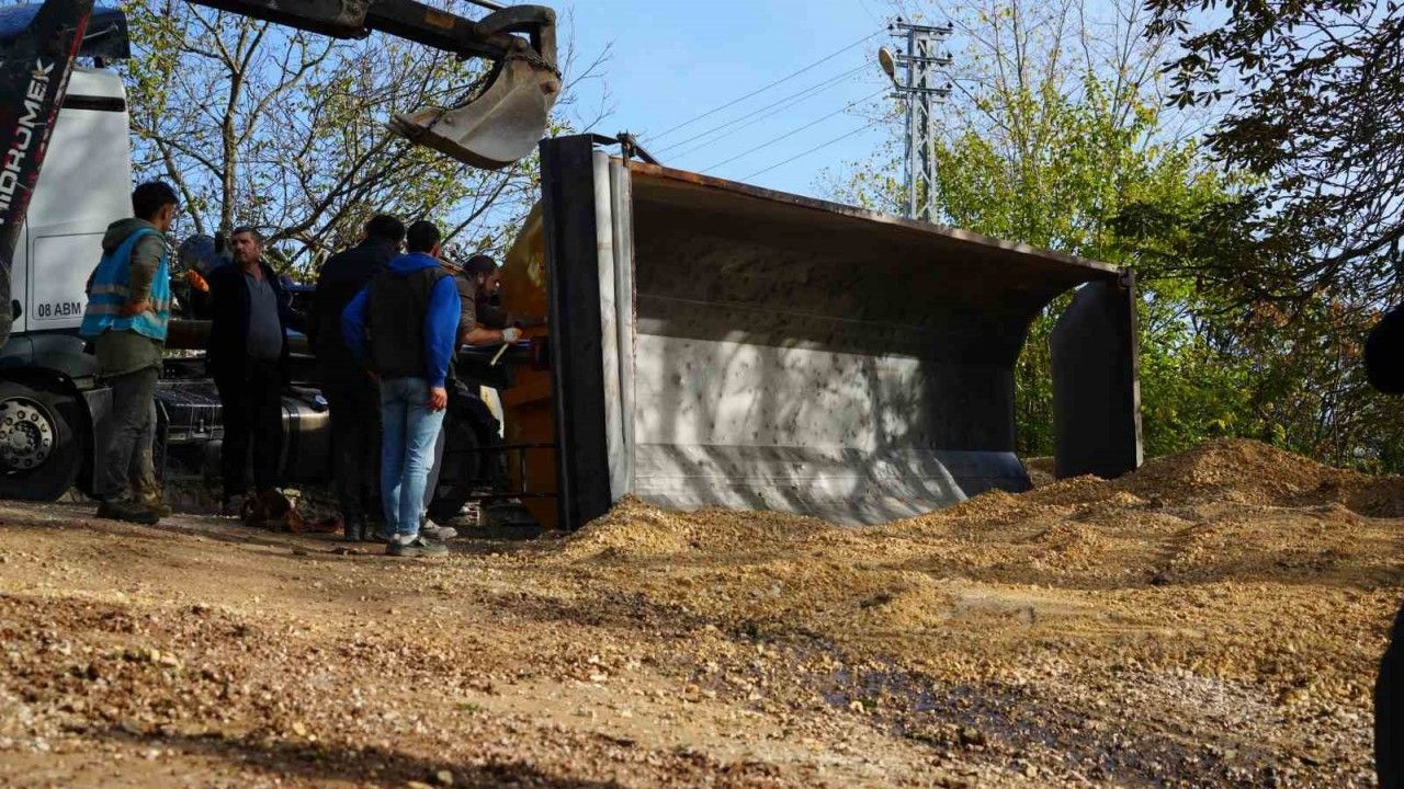Edinilen bilgiye göre, Süverler Mahallesi’nde altyapı çalışmaları kapsamında mıcır taşıyan 08 ABM 155 plakalı kamyonun damperi devrildi. Aracın kupasının zarar görmediği kazada, sürücü yaşadığı korku sebebiyle baygınlık geçirdi. Çevredekilerin yardımıyla araçtan çıkarılan sürücüye ilk müdahaleyi vatandaşlar yaptı. İhbar üzerine olay yerine sağlık ve itfaiye ekipleri sevk edildi. Sürücünün sağlık durumunun iyi olduğu ve hastaneye naklini talep etmediği öğrenildi.